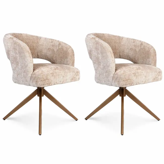 Strafurn Krzesło do jadalni Demi - Beżowe - Podstawa brązowa - Z podłokietnikami - zestaw 2 krzeseł